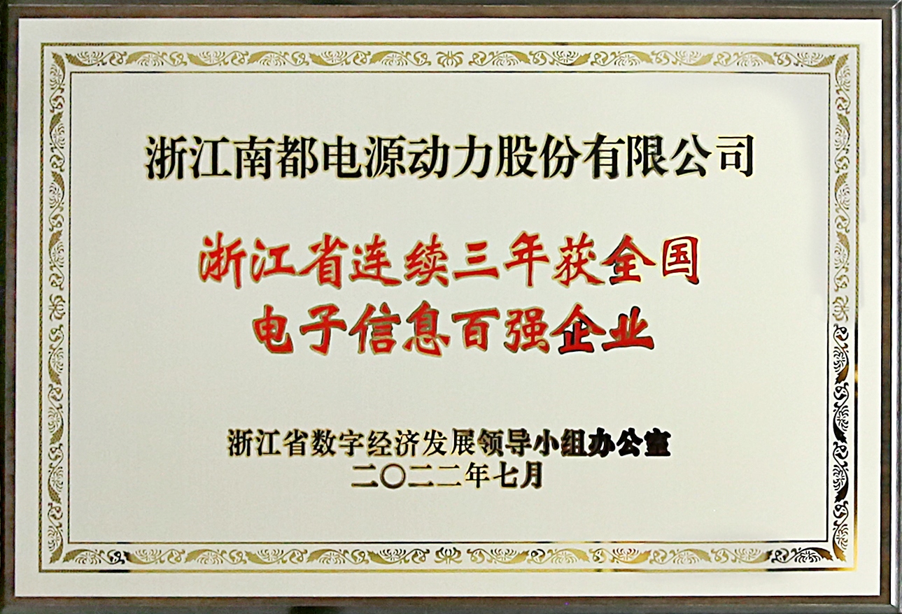 Zhejiang Digital Economy High Quality Development Conference was held in Hangzhou, and the Conference awarded the advanced units. As one of the key enterprises in the development of digital economy in Zhejiang Province, Narada Power was awarded as "National Top 100 Electronic Information Enterprises for three consecutive years in Zhejiang Province”. Mr.Zhu Baoyi, chairman and president of Narada Power, accepted the award.